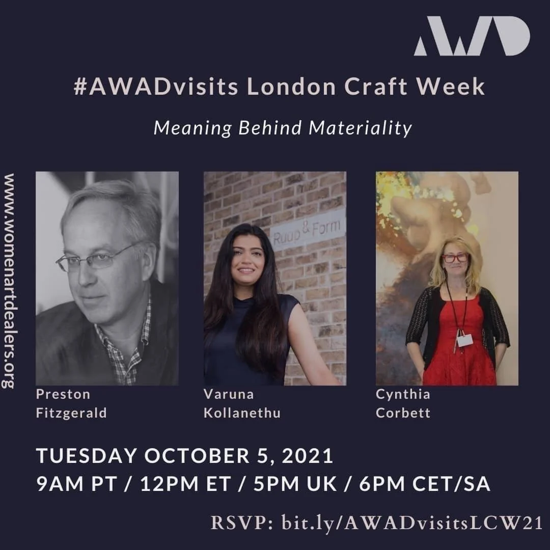 Association of Women Art Dealer is pleased to host AWAD members Cynthia Corbett and Varuna Kollanethu of Ruup & form in conversation with their makers, moderated by Preston Fitzgerald for London Craft Week